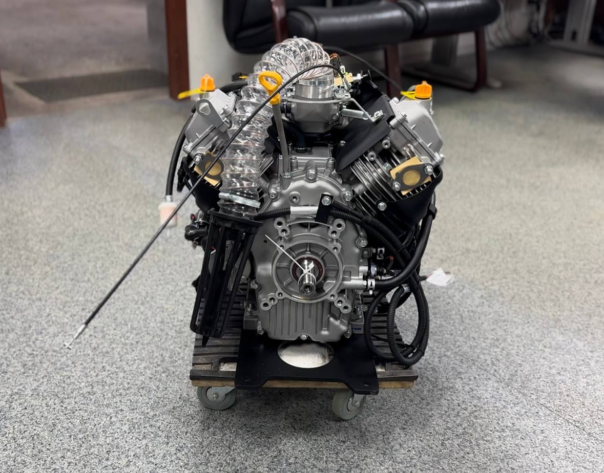 V-образная двухцилиндровая конструкция и система принудительного воздушного охлаждения гарантируют стабильную работу даже при интенсивных нагрузках. Двигатель оснащен электростартером для легкого пуска, вакуумным топливным насосом и эффективной масляной системой с датчиком давления. Обновленная катушка зажигания обеспечивает мгновенный запуск с полуоборота.