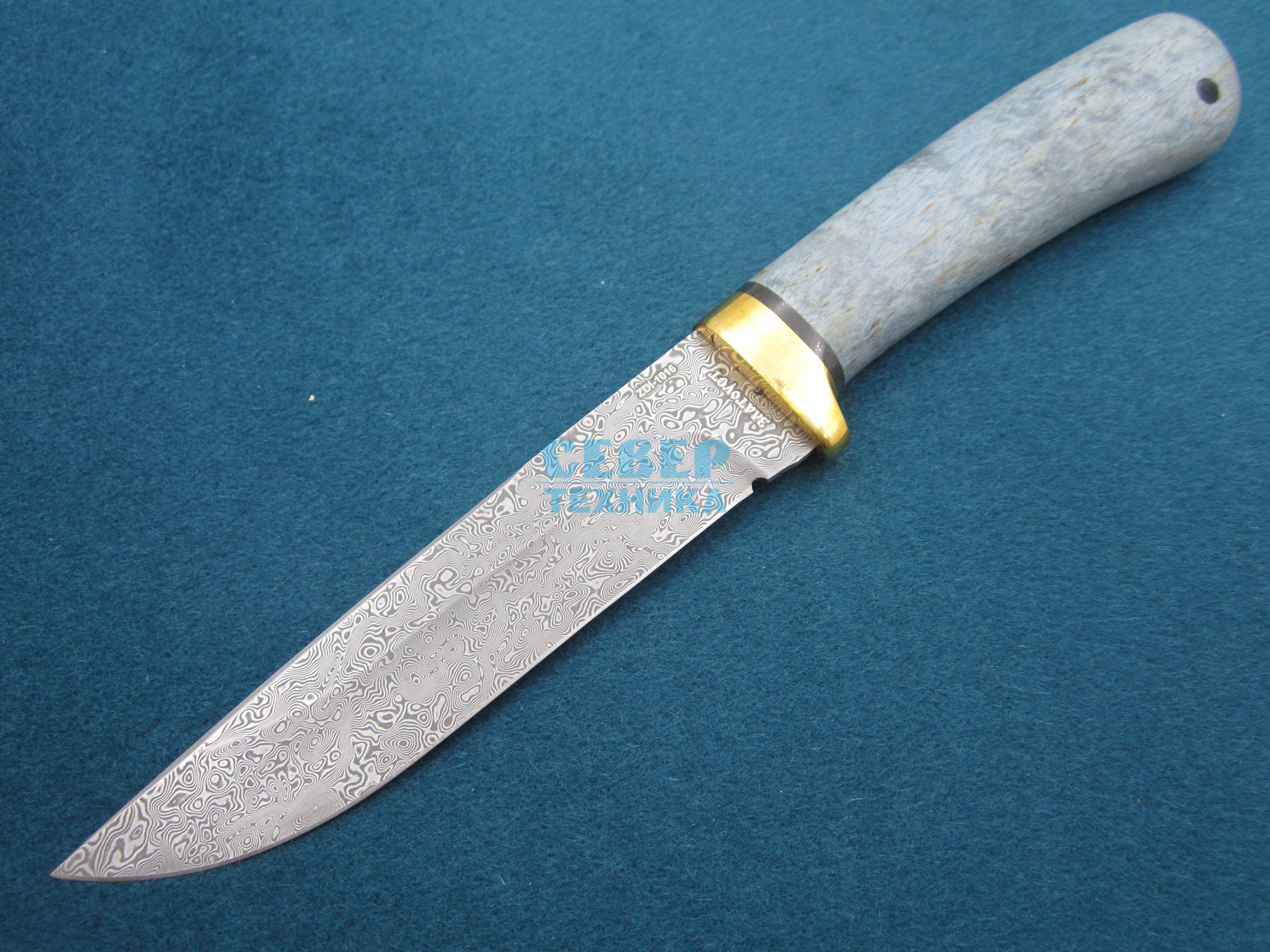 Нож "Лиса" карельская берёза стаб.-латунь, ZDI 1016 /Златоуст